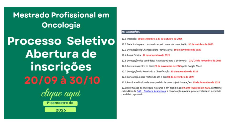 Edital do Processo Seletivo MP Oncologia – 1º Semestre de 2026